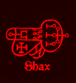 Shax can cause one to become deaf, dumb or blind and can take away understanding. He can take money or possessions and reveal the way to stolen property or hidden things. He provides good familiars and will transport anything.