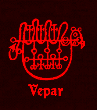 Vepar gives the feeling of lightness and can help with levitation. She appears as a warrior Demoness. She has dark brown hair and wears a leather band around her head. She appears wearing a leather skirt. She is very soft-spoken and very kind. She leaves one with a happy feeling and has a blue aura.