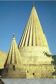 "...seven towers—the Towers of Satan [Ziarahs]—six of them trapezoidal in form, and one, the "center" on Mount Lalesh, shaped like a sharp, fluted point."